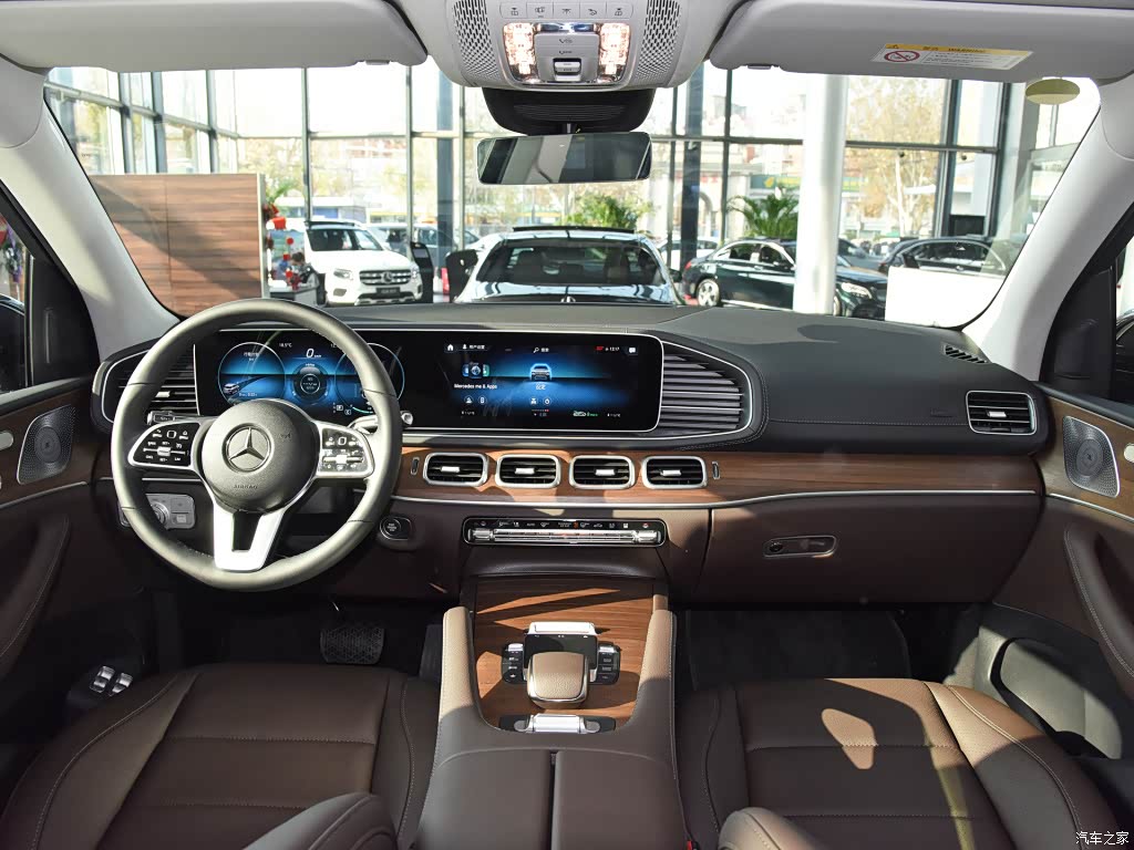 奔驰的内饰最为赏心悦目了,奔驰GLE 350e的内饰设计虽然一眼看上去就非常熟悉,但奇妙的是永远不会觉得腻,可以说是百看不厌,整个内饰的豪华感和科技感融合的恰到好处。这个价位的奔驰车型,内饰用料真就没得挑了,中控台部分主要由胡桃木饰板和皮革组成,观感和触感都很棒。正前方依旧是熟悉的奔驰横向布局的双12.3英寸的双联屏,这两块液晶屏幕的色彩、分辨率以及整体的做工和显示效果,在同级别绝对是顶尖的水准。