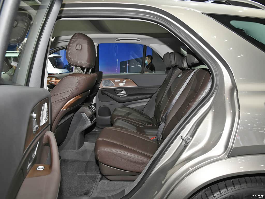奔驰GLE 350e的长宽高尺寸分别是4941*2018*1788mm,轴距为2995mm,除了高度略微增加之外,其他几项数据保持与燃油版车型一致。所以对于这么一个大块头来说,不仅仅是气势强大,乘坐空间也非常宽敞,座椅的设计很符合人体工程学,加上电动腿托,可以很轻松的驾驶。后排座椅靠背角度可电动调节,舒适性同样没得说,后排同样也是分区空调,还有可调节的头枕以及小软枕,再加上全景的大天窗,后排座位的氛围感以及豪华感都非常出色。