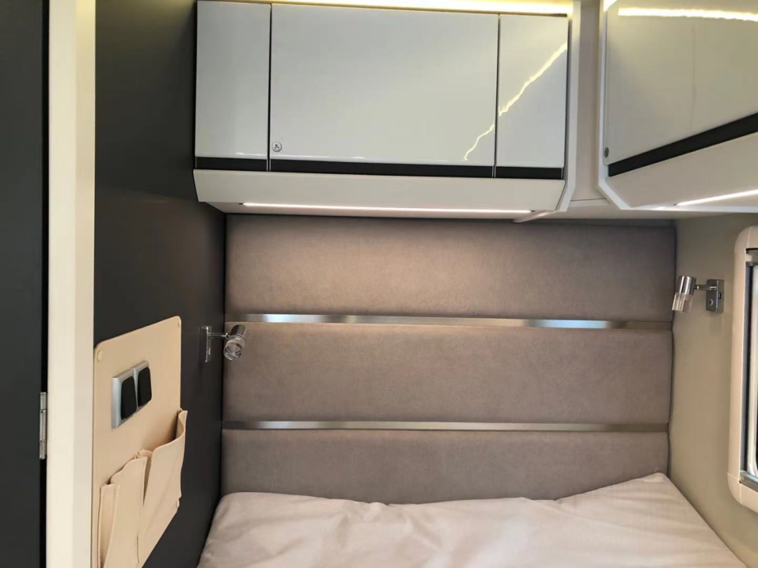 在床头和床的上方,安装有阅读灯,储物挂袋,吊柜等设施。