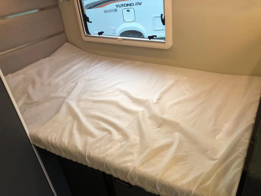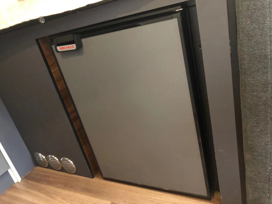 而随车的房车专用冰箱则巧妙地集成在了床的下方。