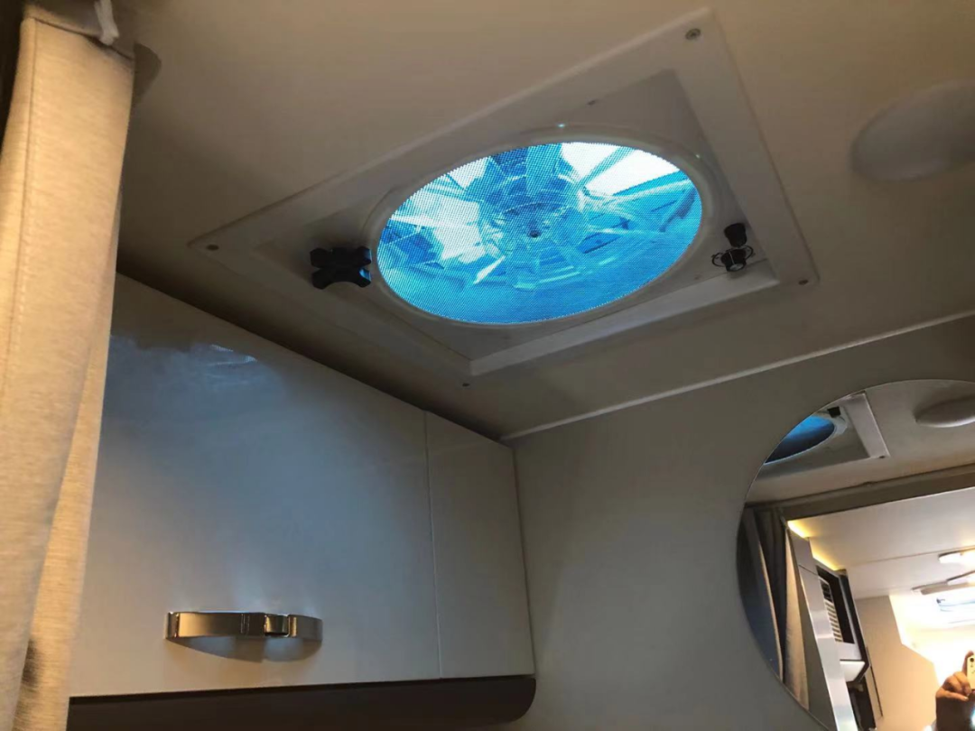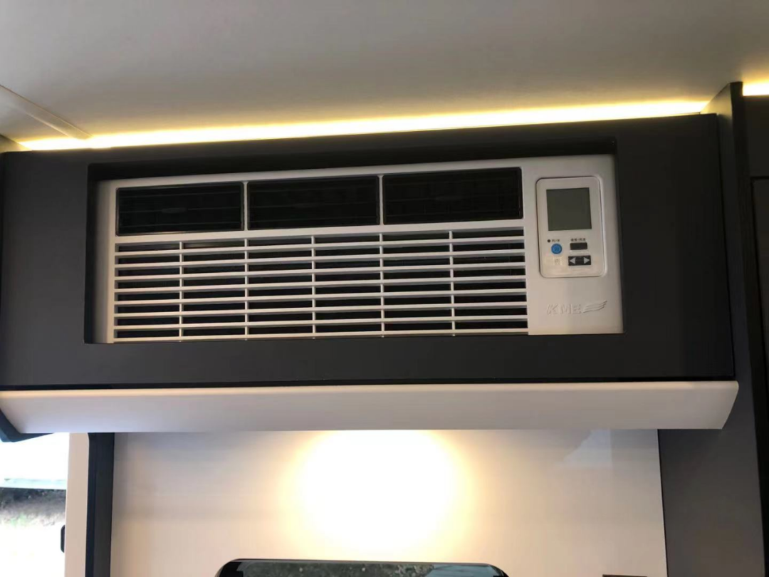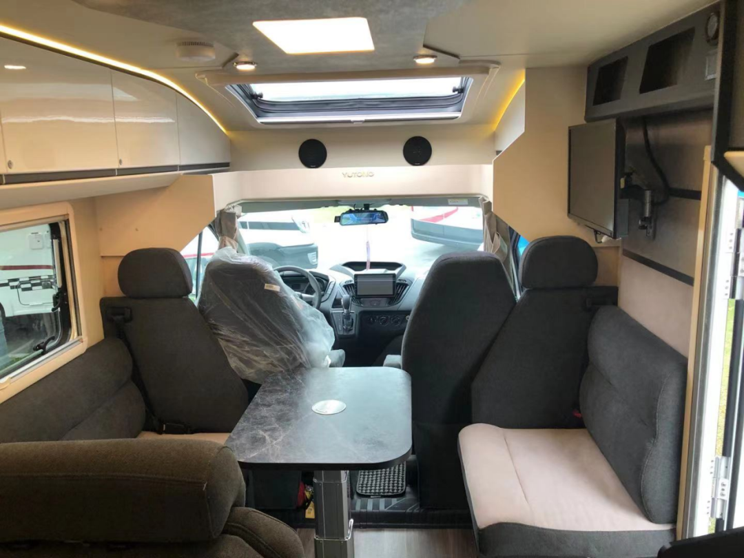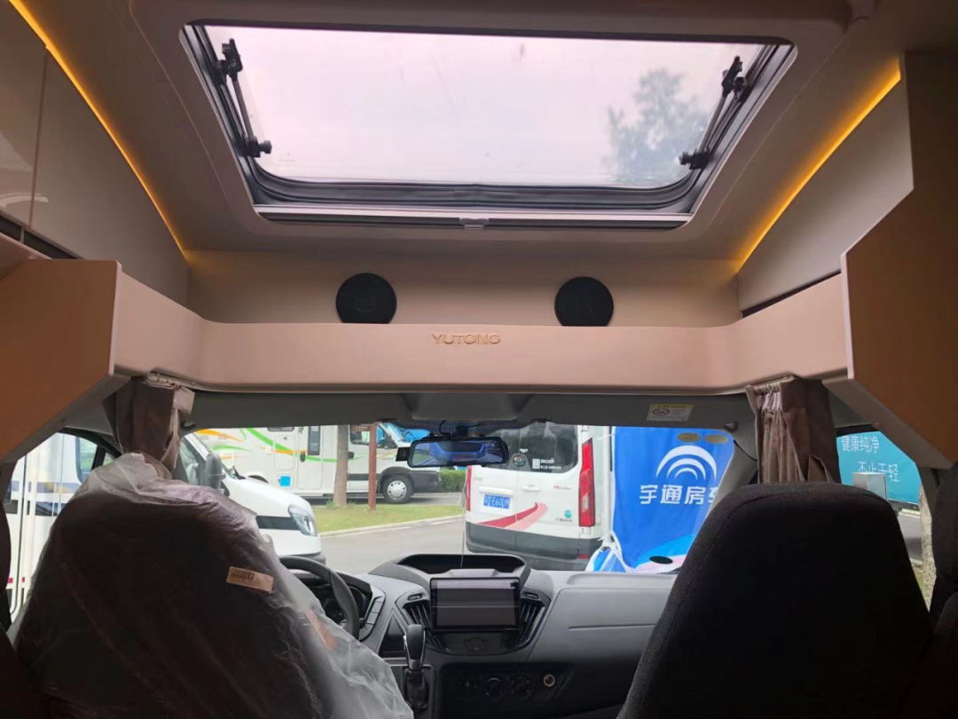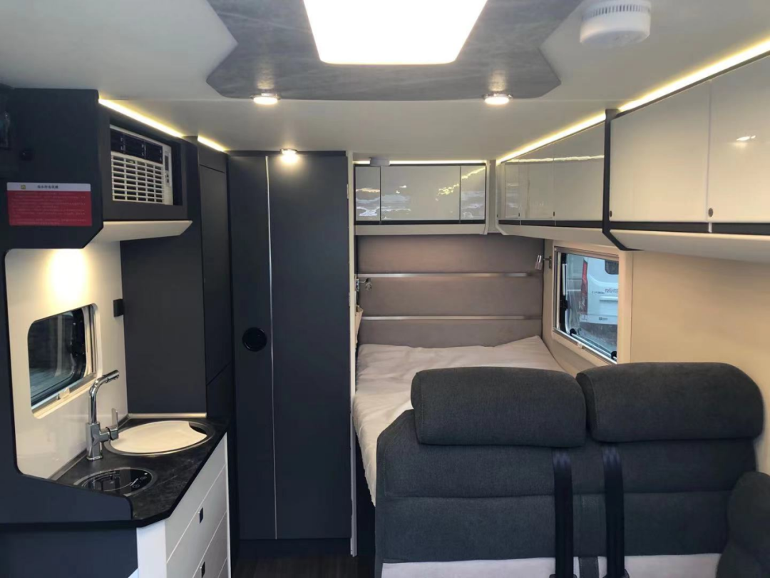车辆的定制房车专用空调安装在厨房区域上方,采用嵌入式设计,兼顾卡座和后纵床,同时能更快的带走油烟。