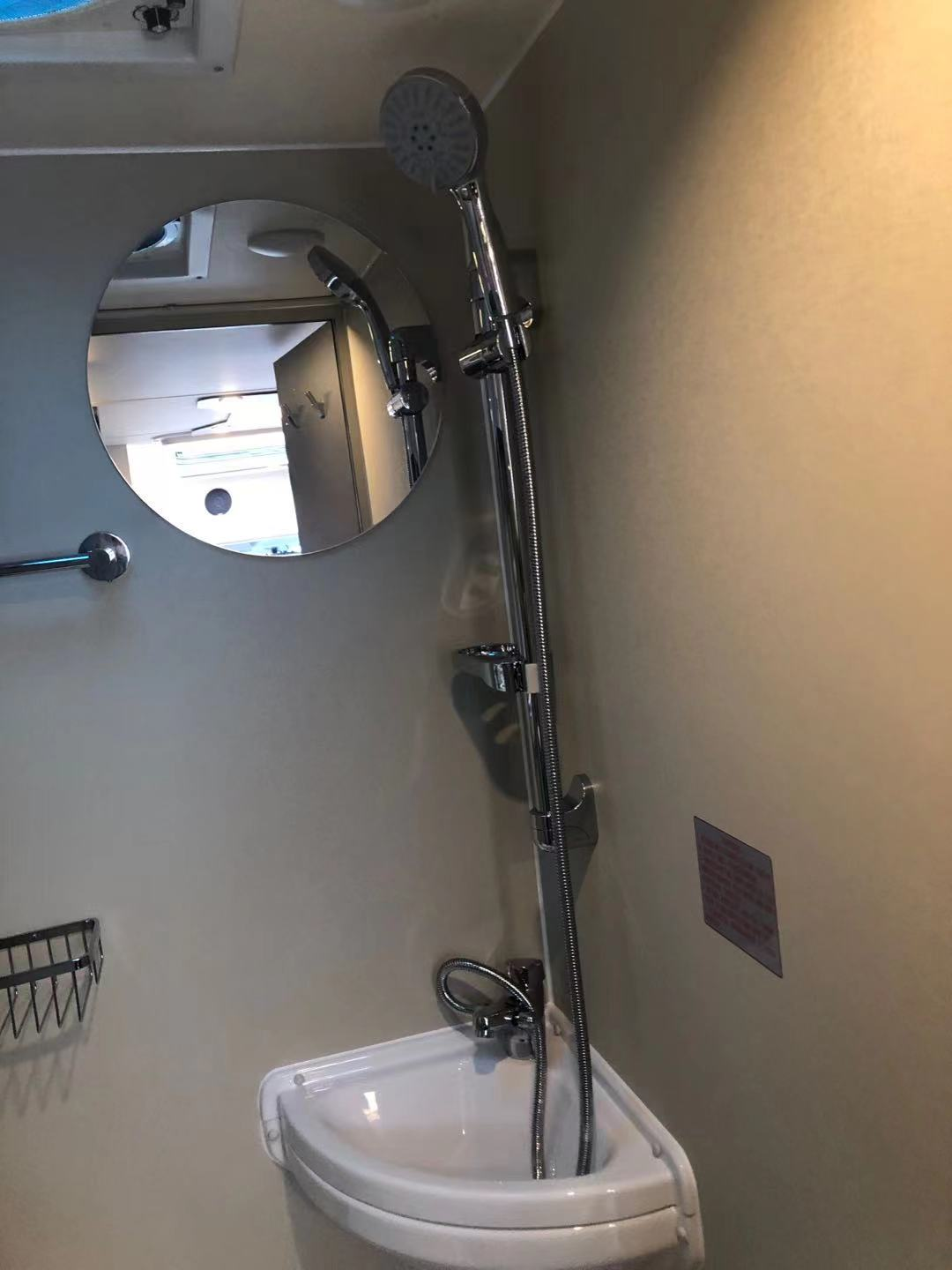 淋浴系统、置物架、镜子、换气扇也一应俱全。