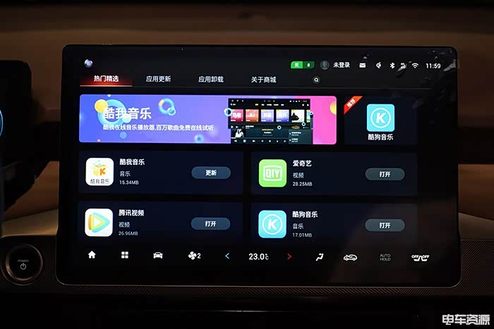 在娱乐性方面,该屏幕内置了QQ音乐、在线电台、火山视频以及抖音,满足基本的娱乐需求没有任何问题。除此之外,还可通过软件商城来下载爱奇艺等视频软件。不过这里需要吐槽一下的是,软件商城里的APP比较少,在拓展性上还有待提高,希望未来可通过OTA进行优化。