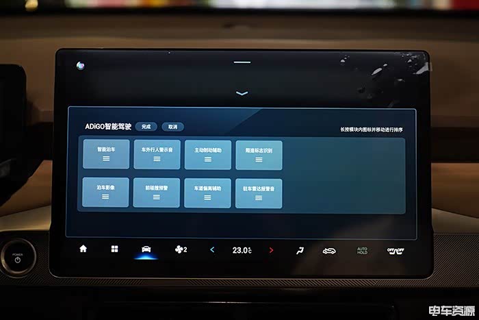 如果你需要调节更多驾驶方面的内容,点击屏幕下方车辆样式的按钮即可。值得一提的是,ADiGO智能驾驶的按钮也可以根据驾驶者自己的需求进行顺序设置,整体还是非常人性化的。