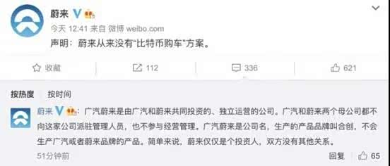 蔚来的自身的定位是打造高端的定位,先前的设想应该是长安试图使用这一种方法论把长安高端电动车品牌给带起来。而在2017年开始,蔚来就开启了多点爆破的模式,包括与长安合作的长安蔚来,与广汽合作的广汽蔚来,当中还试图与上汽合作,受限于《汽车产业投资管理规定》,要求新建独立纯电动汽车企业投资项目所在省份,应符合以下条件:(一)上两个年度汽车产能利用率均高于同产品类别行业平均水平;(二)现有新建独立同产品类别纯电动汽车企业投资项目均已建成且年产量达到建设规模。而上海已经确定引入特斯拉独资建厂产能规划25万辆的项目,蔚来需要等一等而未能成行。2018年全年,蔚来汽车勉强完成1万辆交付,全年亏损96.39亿元,这种情况下,自然无法顾及多个合作项目。以广汽蔚来为例,2019年12月27日,广汽蔚来以“HYCAN合创”之名发布首款新车007,全年销量不足千台,这些投资可能还造成了负担。2020年的最后一天,广汽蔚来发布消息,称广汽蔚来是中国首家接受比特币付车款的汽车企业,而比特币不属于中国法定货币,不可作为支付方式。