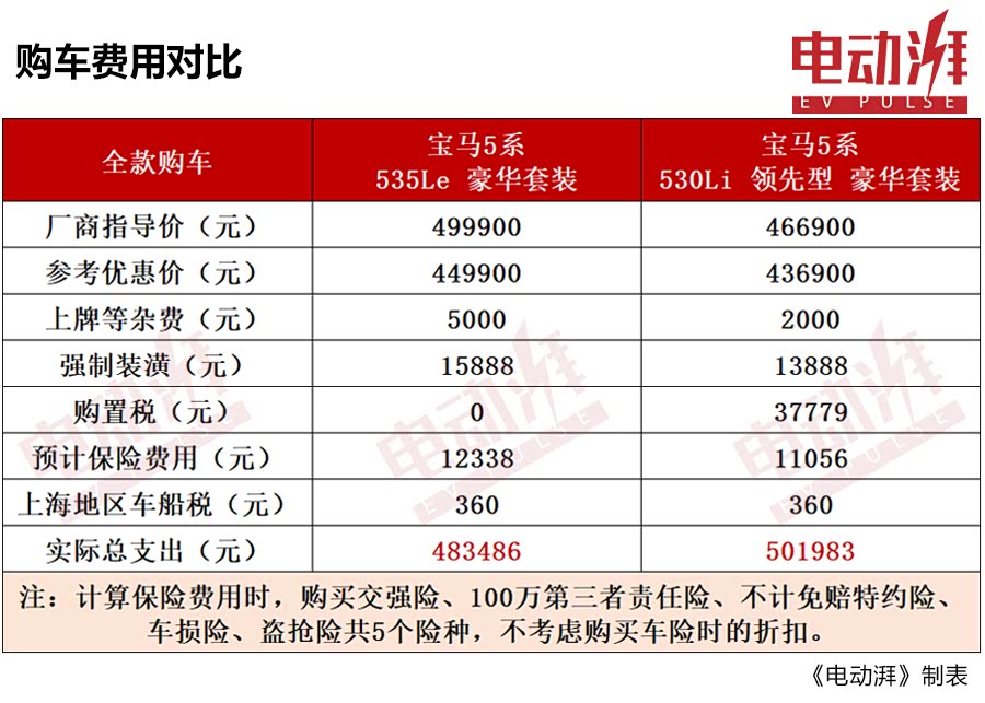 就以现款宝马5系来说,插混版535Le的厂商指导价为49.99万-53.69万元,基本与燃油版高配车型的厂商指导价相当,但可以免购置税以及获得专属新能源牌照,这对于很多身处限牌城市的消费者来说的确很“香”。那接下来我们就看看宝马5系燃油版与插混版车型的实际落地价相差多少。