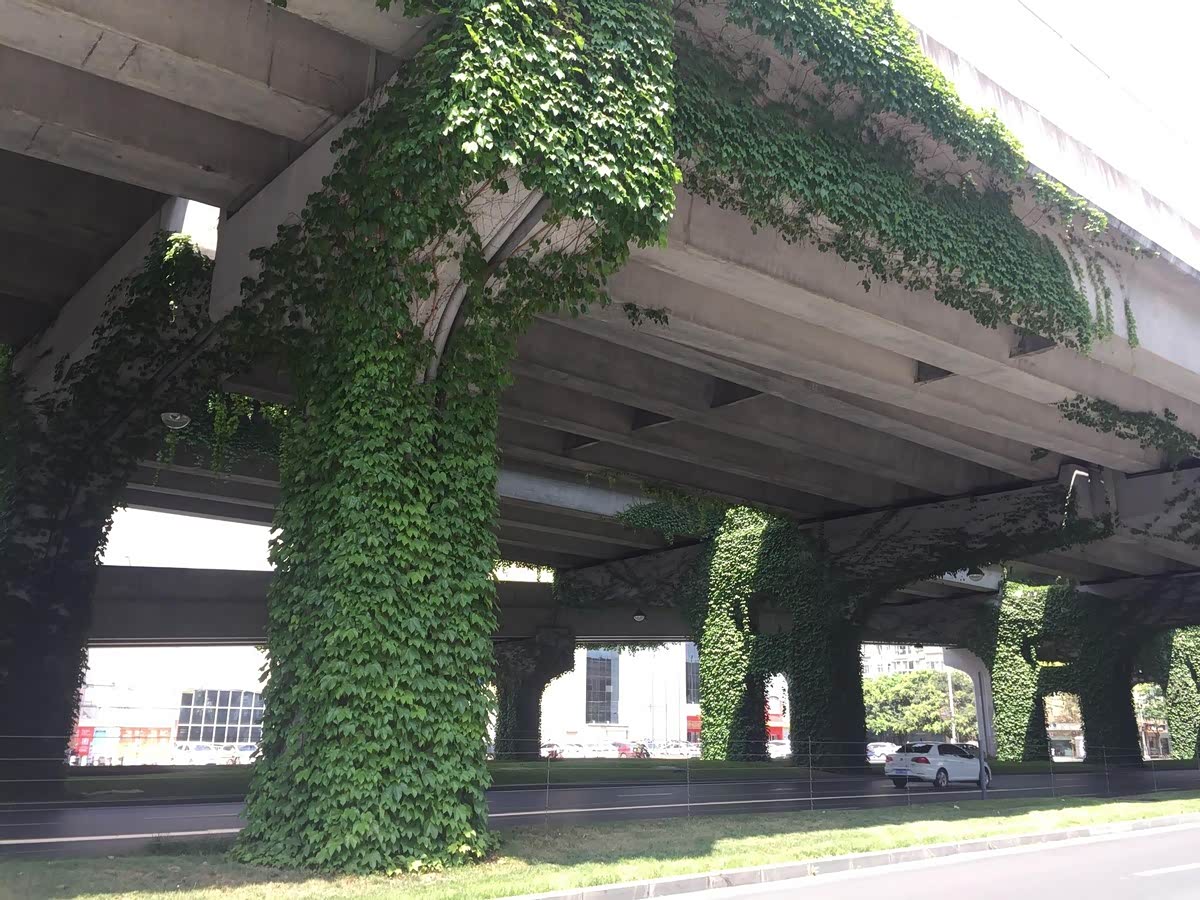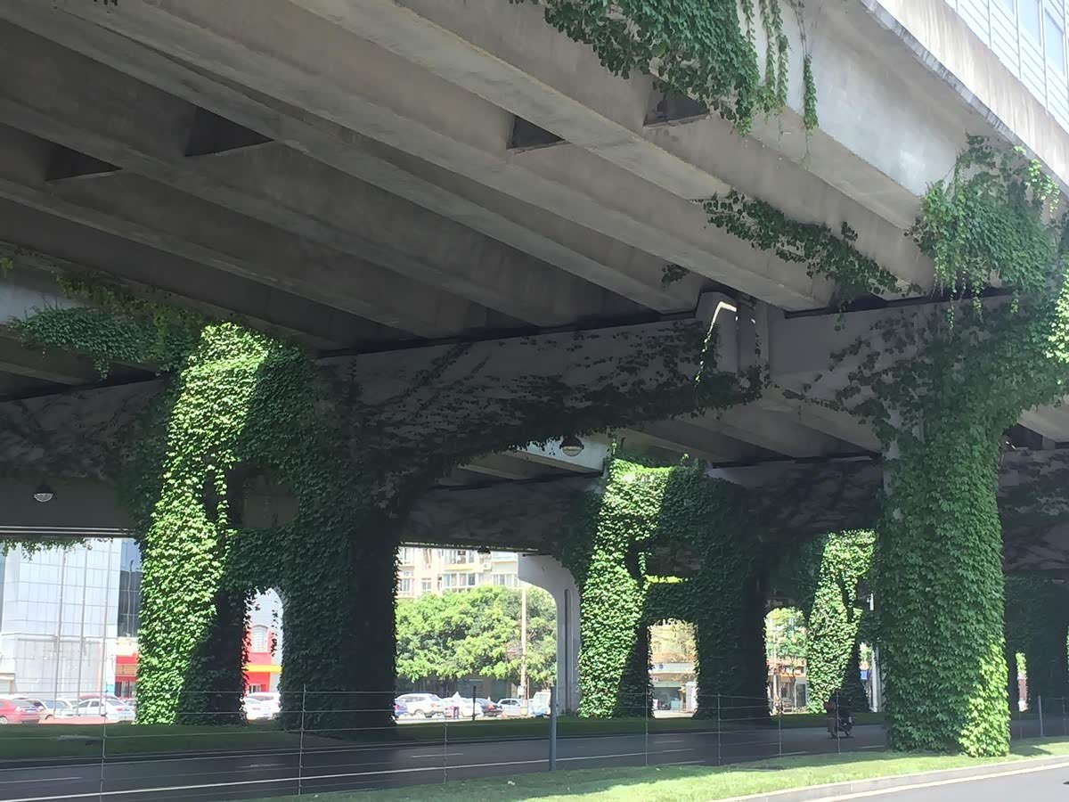 水泥遭到风吹日晒后会呈现出各种各样的裂痕,这种情况会为高架桥造成巨大的安全隐患。而爬山虎便可以贴合高架桥的支撑部分,使其不会收到风雨的侵袭,延缓高架桥的老化。