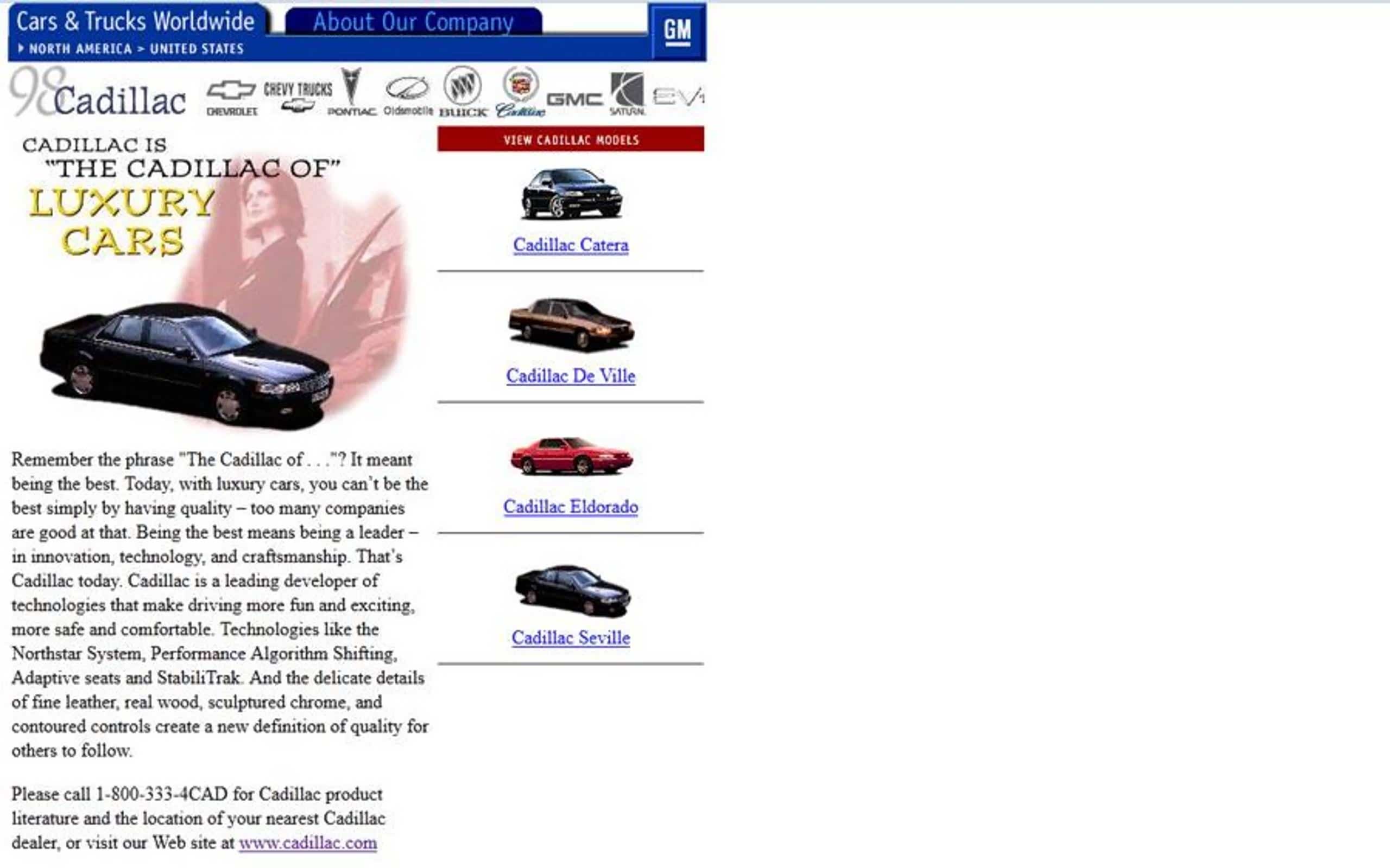 如果要评一个最优奖,林肯应该会赢得这场“90年代汽车网页设计争霸赛”第一名。正如网页上方硕大的标题(What A Luxury car Should Be)所示一样,精美的排版设计也十分符合林肯品牌一贯的高端豪华路线。