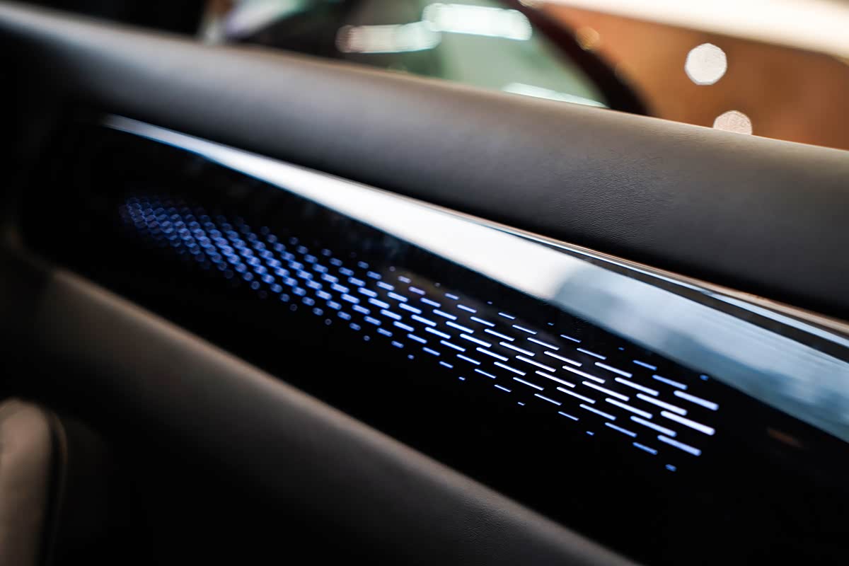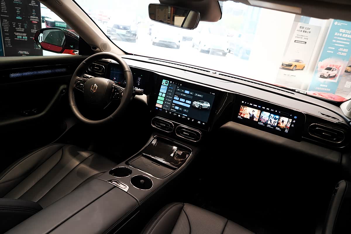 内饰给人印象最深刻的当然就是T台型三联屏设计了,赋予驾驶仪表、车机、娱乐屏三屏不同的功能,各种用车场景随你想象。同时也有许多可圈可点的细节,比如四个INS门板透光氛围灯,可实现随音乐跳动,又比如一体式NAPPA真皮座椅和怀档设计等,从许多小细节上都能看到用心之处。