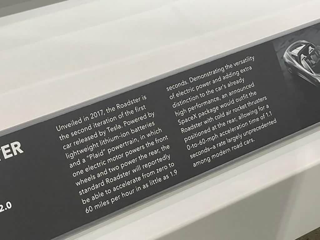在博物馆在对这款车的介绍中表示,Roadster 2跑车将提供一个SpaceX package升级套件,在车后部安装 Space X公司的火箭推进器,推进器将被隐藏在车尾,以实现1.1秒的0-60英里(0-96km/h)加速性能。就算不选装SpaceX package升级套件,Roadster 2的0-96km/h加速时间也能做到1.9秒内,这样的速度同样也是惊人的。