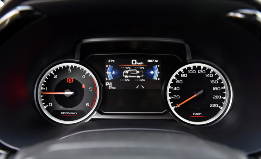 全新一代D-MAX采用了机械和液晶结合的仪表盘,虽然界面很朴实,但是十分清晰易读,中间的液晶区域是彩色的,关键的显示数据都是在最显眼的地方,实用性还是很强的。