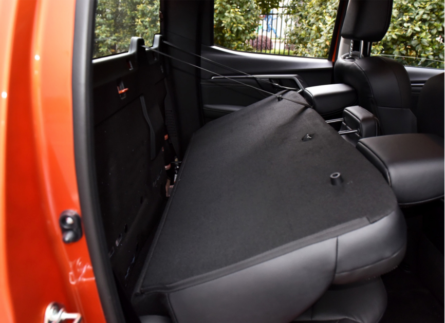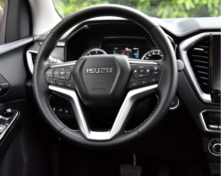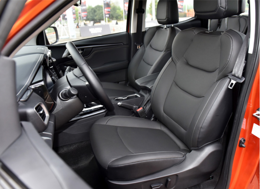 全新一代D-MAX的座椅采用黑色皮革材质包裹,填充十分厚实,无论是肩部支撑还是侧向包裹方面都有着不错的表现。身高180cm的体验者落座前排,调整最舒适的坐姿后,头部还拥有四指的余量。