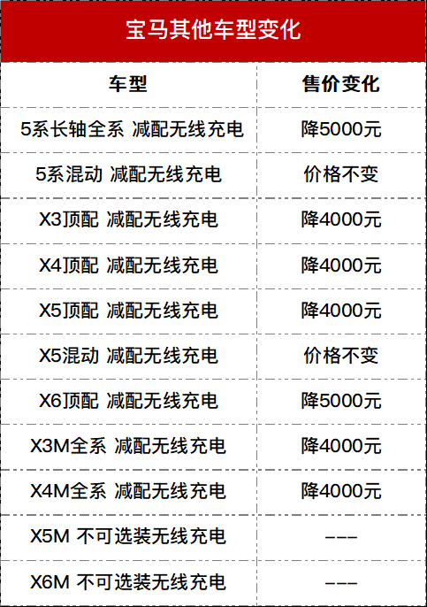 至于宝马X5 M和宝马X6M,目前已经暂停无线充电功能的选装,但未对售价进行调整。