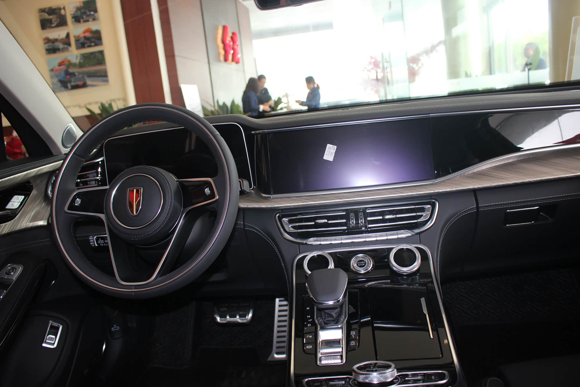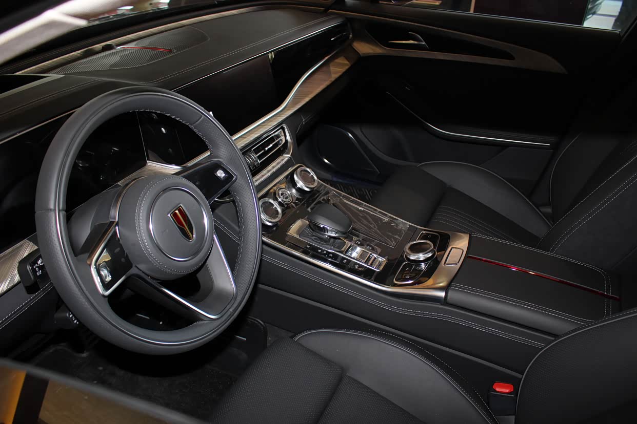 如果红旗H9的外观设计就像咱们的“传统武术”,招数漂亮、打得好看,那么来到这款车的车内,就能让人体会到“中西结合”的时尚内涵了。在BBA都在不断钻研人机交互功能的大环境下,红旗H9的车内也不落俗套,给我们带来了更加新潮的玩法和视觉感受。中控台采用了大量的黑色烤漆饰板和金属拉丝元素,第一眼看上去就十分豪华了。12.3英寸嵌入式液晶屏和烤漆面板融为一体,配合11.7英寸液晶仪表盘,营造出强烈的而科技感。下沿配置了细长的哑光铝合金饰条,加上金属质感很强的物理按键和旋钮控制键,这样带有“东方意境座舱”的确让人过目难忘。