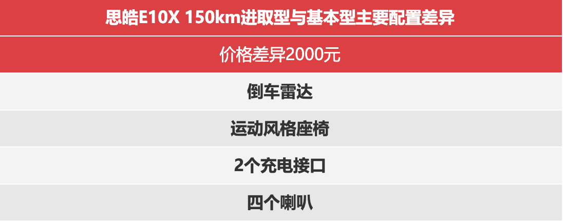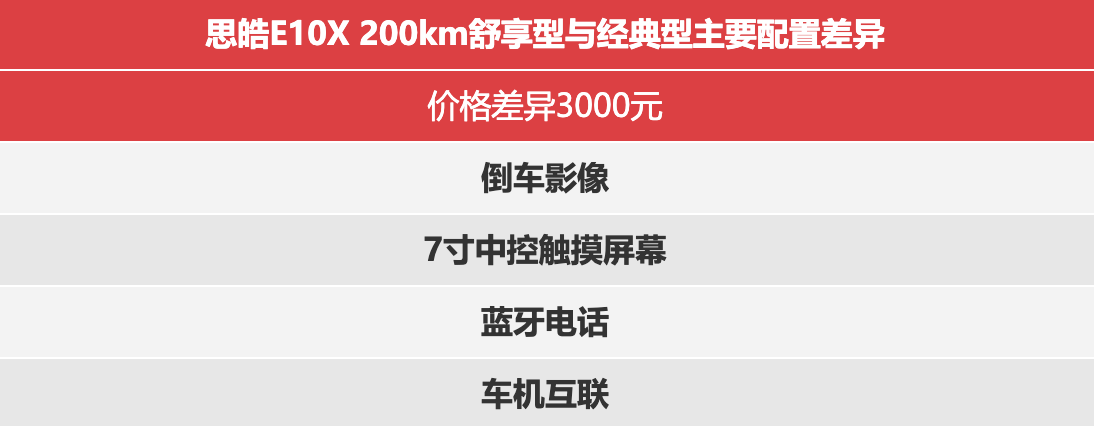 在配置上的选择更多样,价格的跨度更大,不管是纯代步需求,还是有出远门需求、讲究品质的群体,都可以在思皓E10X上找到合适的选择。