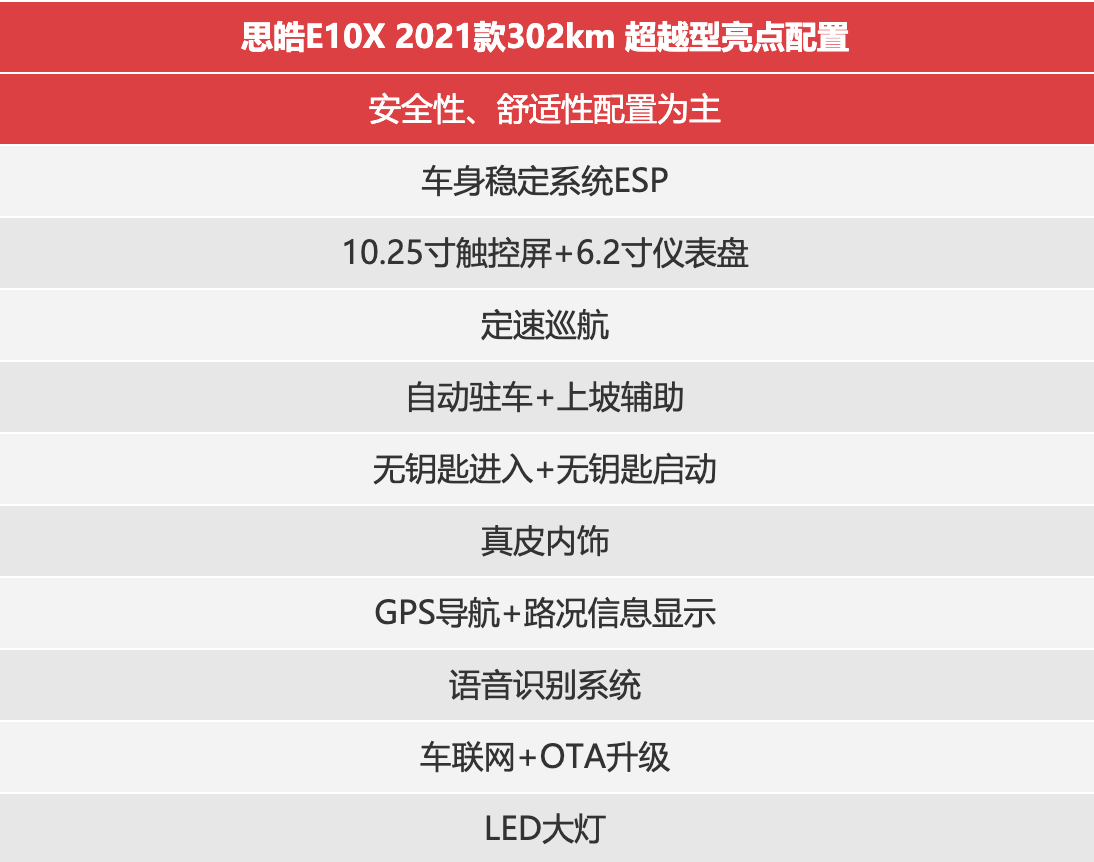 【思皓E10X 302km 超越型】推荐指数:★★★★★