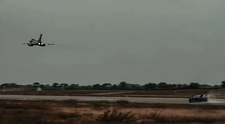 驾驶阵风战机的是法国海军陆战队机长埃蒂安,在阵风机队里,无论是训练还是实战,一切都发生的很快,需要飞行员和其他工作人员迅速做出正确的判断,不能有任何失误。在阵风和Chiron的本次对阵中,起步后不久,Chiron率先就获得了领先,搭载8.0L四涡轮增压W16缸的Chiron拥有1500马力+1600Nm的峰值输出,0-100km/h提速用时仅需2.4秒,0-200km/h提速用时6.1秒,0-300km/h提速用时13.1秒,0-400km/h为32.6秒。