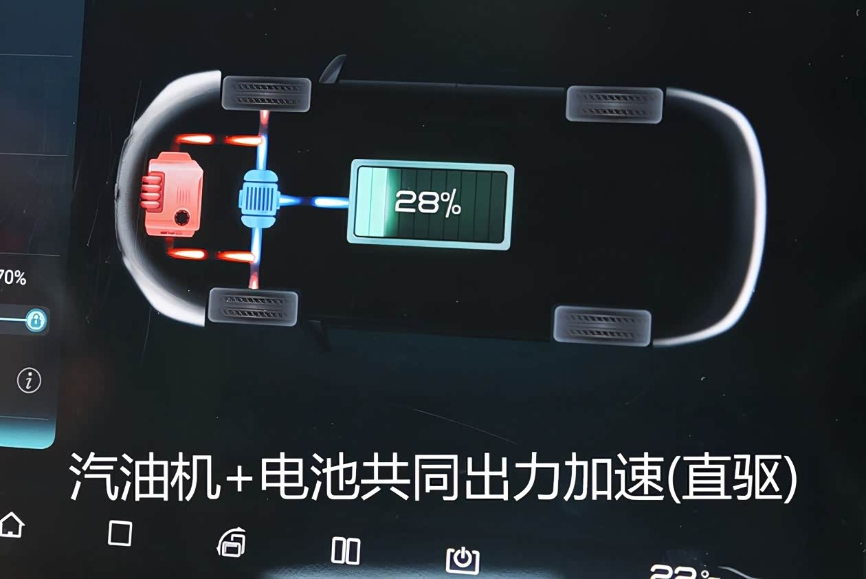 而关于这套混合动力系统的结构和工作原理,已经有很多文章详细解读过了,我也就不再复述了,总之您记得这套系统是一个以电动机驱动为主要出力方式、汽油机主要用来发电、少数工况参与直接驱动的工作方式,它更像是一个拥有极高效率的增程式电动车,而且是有电、没电都很省油。