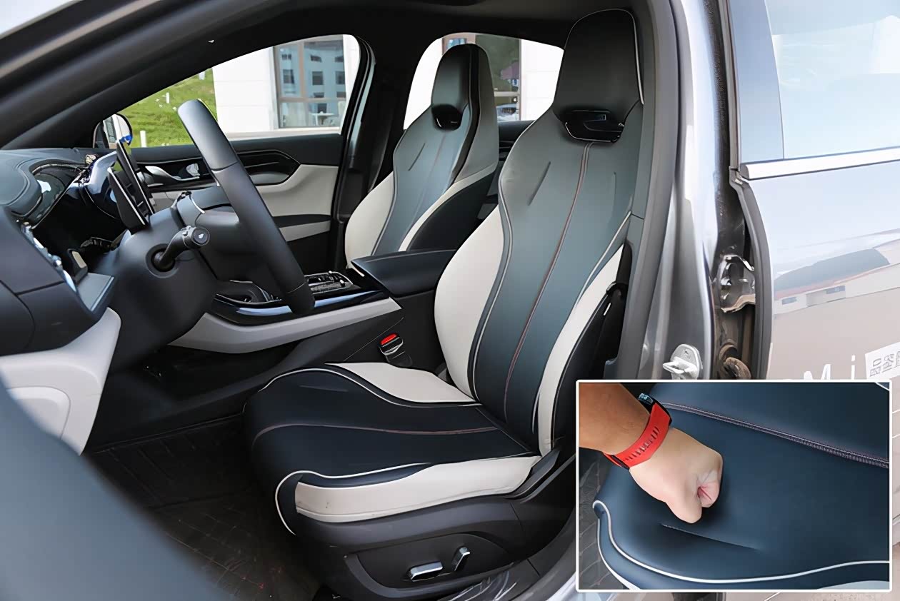 座椅面料是另外一个问题,虽然皮质面料看上去更高档,但其并未采用表面打孔的工艺来提升透气性,捂一身汗恐怕是常事儿了。所以我宁可比亚迪官方给我提供一套织物座椅,这样冬天、夏天都不那么难受了。