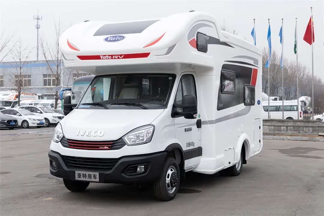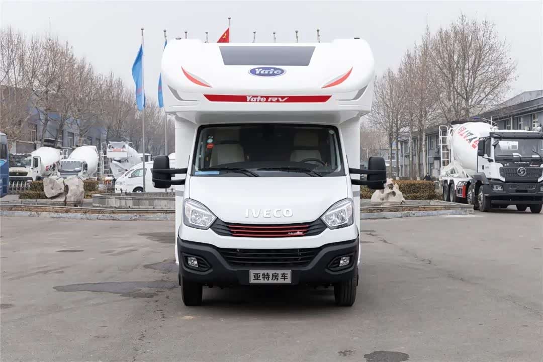 2021款的纪念版Y8-L2整个车身轮廓没有改变,依然是白色车身,红色和黑色彩条装饰。新车继续采用亚特跑车额头的家族式设计语言。极富雕塑感的车身造型与优美流畅的车身线条相得益彰。依维柯标志性的大灯组搭配红色前格栅,使得Y8-L2在优雅中又添了一丝运动气质。整车采用三明治复合车身结构,外墙板为玻璃钢材质。双层亚克力玻璃保温车窗和进口房车门,后桥加宽轮距设计。