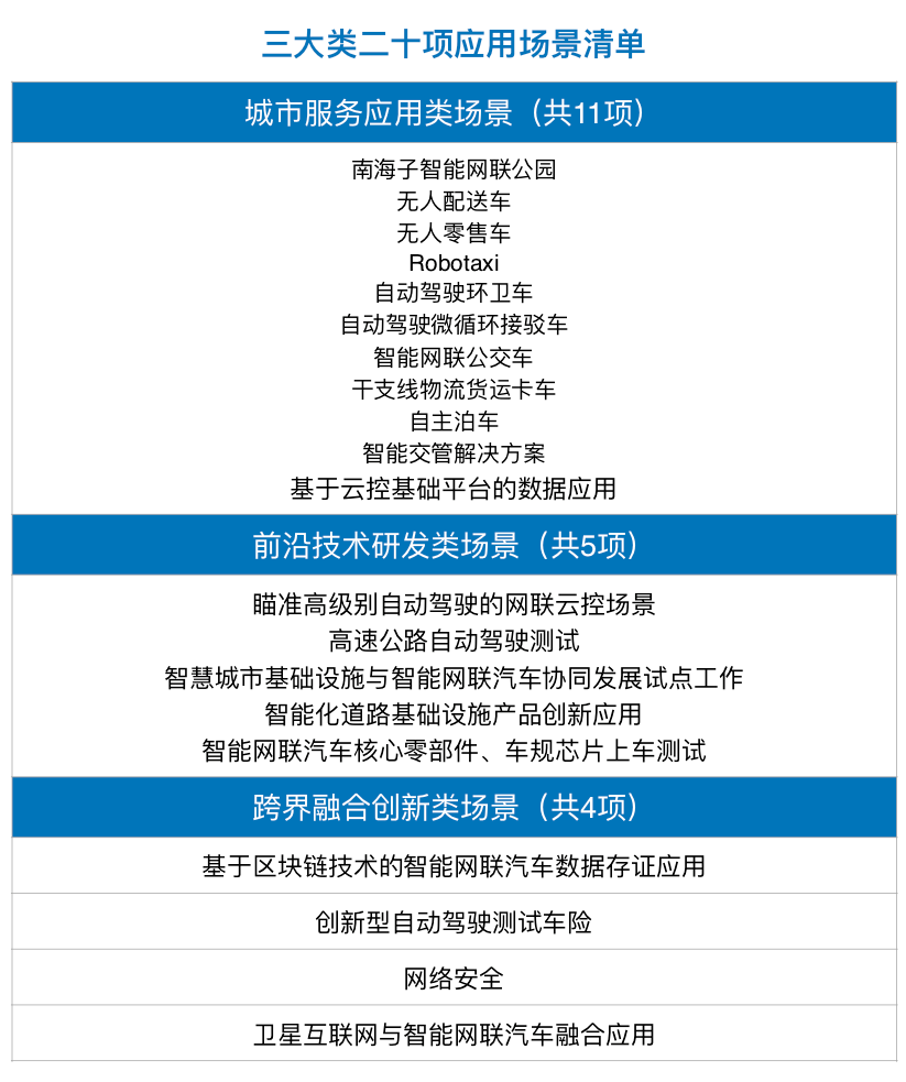 而为了吸引和鼓励相关的企业、机构参与到示范区建设当中,相关部门筛选出三大类(共二十项)应用场景,邀请企业和机构参与产品研发、技术应用、场景示范等各类合作。对于优秀的项目,示范区还将给予资金和政策支持。