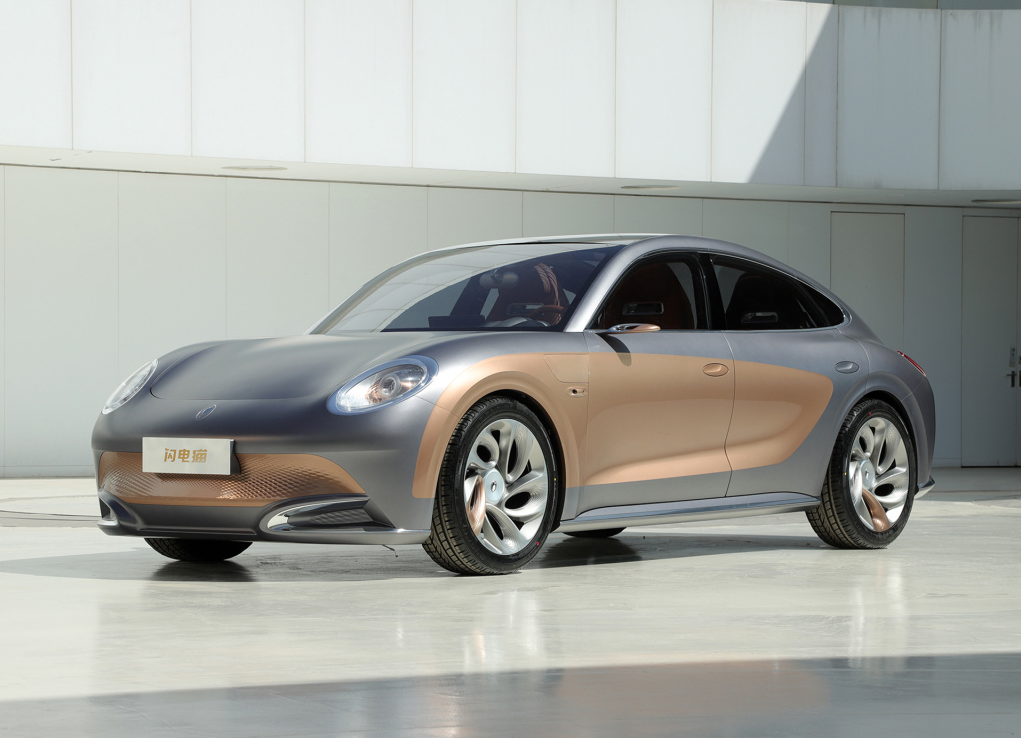闪电猫的外观简直太像保时捷了,足以以假乱真。前脸基本上就是采用了“蛙脸”式的造型设计,U型的机舱盖、圆形的前大灯,以及低趴的下唇边等等,都让它赚足了“回头率”。由于是纯电动车,前包围取消了进气口的设计,取而代之的是封闭式的菱形网状样式,看上去非常精致。