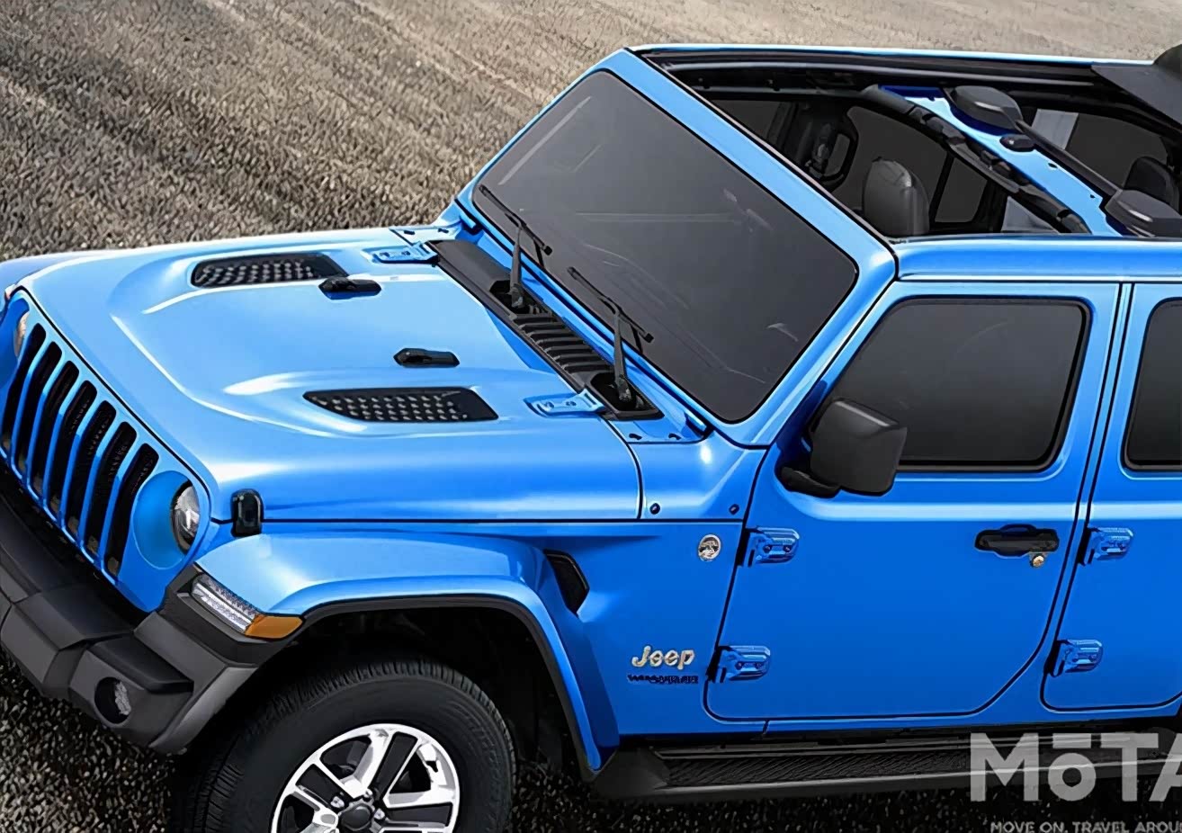 外观上,新车基于Unlimited Sahara打造而来,整体造型和普通版车型类似。前脸采用Jeep家族经典造型的直瀑式进气格栅的设计,两侧搭配圆形大灯组。车身侧面为熏黑处理的后视镜罩以及多辅式轮毂等。车尾部分采用造型方正的尾灯组。与普通车型最大的不同的是,新车采用了电动敞篷设计,搭配20秒内完成一键开合的电动折叠顶棚,以及提供Hydro Blue和Sting Gray两种不同的车身涂装,两款车型个限量150台。