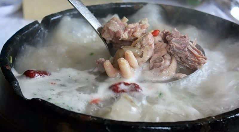 鲁朗石锅鸡,炖鸡用的石锅是用一种叫做“皂石”的云母石砍凿而成,而这种石头仅产于墨脱,要靠背夫从墨脱把原始石材背出来后,再由门巴族人用整块石材手工细 心凿制,加工时要求下手力道匀称,一旦心急,皂石立被凿穿,所以这种石锅售价也非常昂贵。墨绿色的云母石锅,保温性特别好,而且据说富含镁铁等17种矿物微量元.