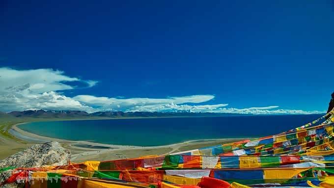 今日前往那曲,沿途观赏藏北大草原、青藏公路、青藏铁路,翻越那根拉山、游览西藏三大圣湖之一的纳木措。纳木措是世界上海拔最高的咸水湖,也是中国第二大咸水湖。“马年转山、羊年转湖、猴年转森林”,每到藏历羊年都有大批信徒来此转湖,以求灵魂超越。一望无际的湛蓝色湖水和无比清澈透明的蓝天,令人无法分辨出哪里是湖水,哪里是蓝天,远远望去似乎天连着水,水连着天,天蓝水更蓝。