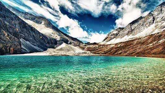 【牛奶海简介】亚丁牛奶海,海拔4600米。牛奶海,又叫洛绒措,位于央迈勇神山脚下的山坳里,牛奶海是一个面积不大状如水滴的古冰川湖。四周雪山环绕,湖水清莹碧蓝,湖畔则是一圈乳白色环绕,故称牛奶海。牛奶海是亚丁地区的圣湖之一,位于央迈勇神山下,海拔4600米。牛奶海湖水深浅不一,近岸由于湖底远久植物的沉淀而略显黑色,往里面一些则是浅绿色的一带,再深处则是碧绿色的水面,蓝得透亮。阳光照耀在静静的湖面上,水面如宝石般熠熠闪光。