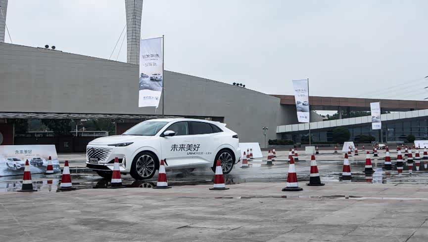 随后的第二个体验场地就是紧急变线(麋鹿测试)场地,由于场地的尺寸限制,这条测试道路并不能完全按照非常标准的麋鹿测试道路来设计,缩短了A、B、C区域的间隔距离。打开四驱系统,加速至60km/h,然后左….右!回正,横向支撑性不错,车尾也很听话的就过来了。