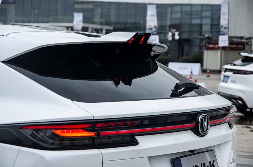 尾部大尺寸的尾翼配合高位刹车灯设计是一个亮点,运动属性被凸显出来,而贯穿式的尾灯设计有独特的灯腔造型,在踩下刹车点亮之后的辨识度非常高。