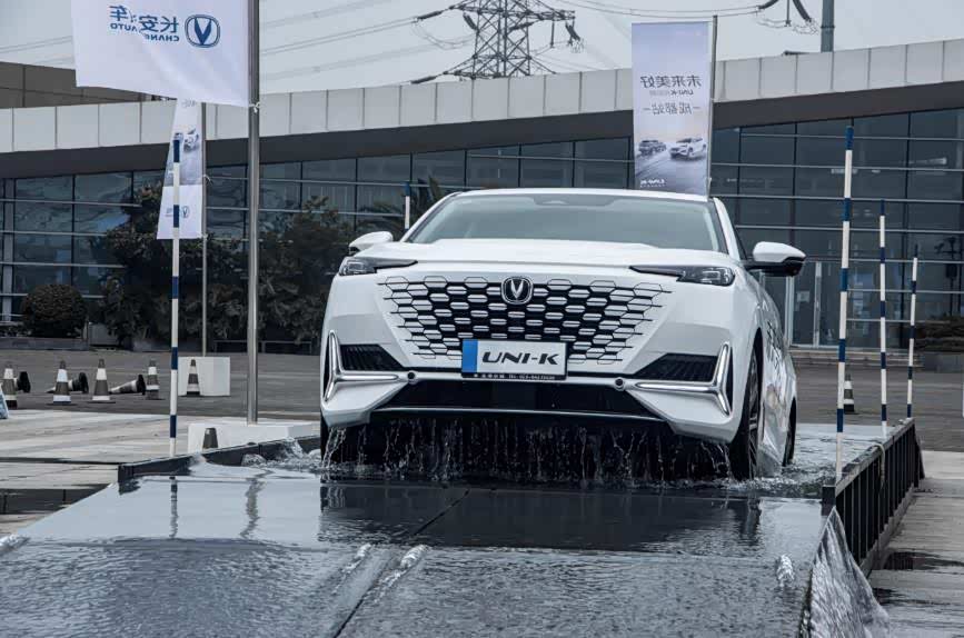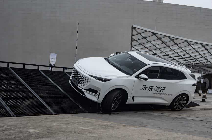 第三个项目就是深度达500mm的涉水路段,由于本身UNI-K就拥有比较高的车身,再加上高位进气口的设计,自然也不会出现问题。