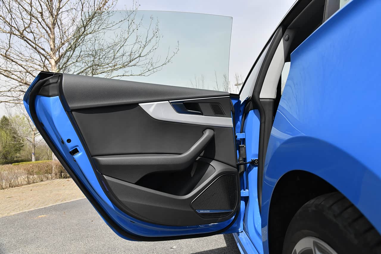 新款A5整体轮廓还是很圆润的,但是车身的线条变得十分锋利,就像是一个身体匀称的精神小伙练出了八块腹肌。车漆新增了耀夜绿和流光蓝两种颜色,一暗一亮有着很大反差,本次试驾车的配色就是这锃光瓦亮的流光蓝。