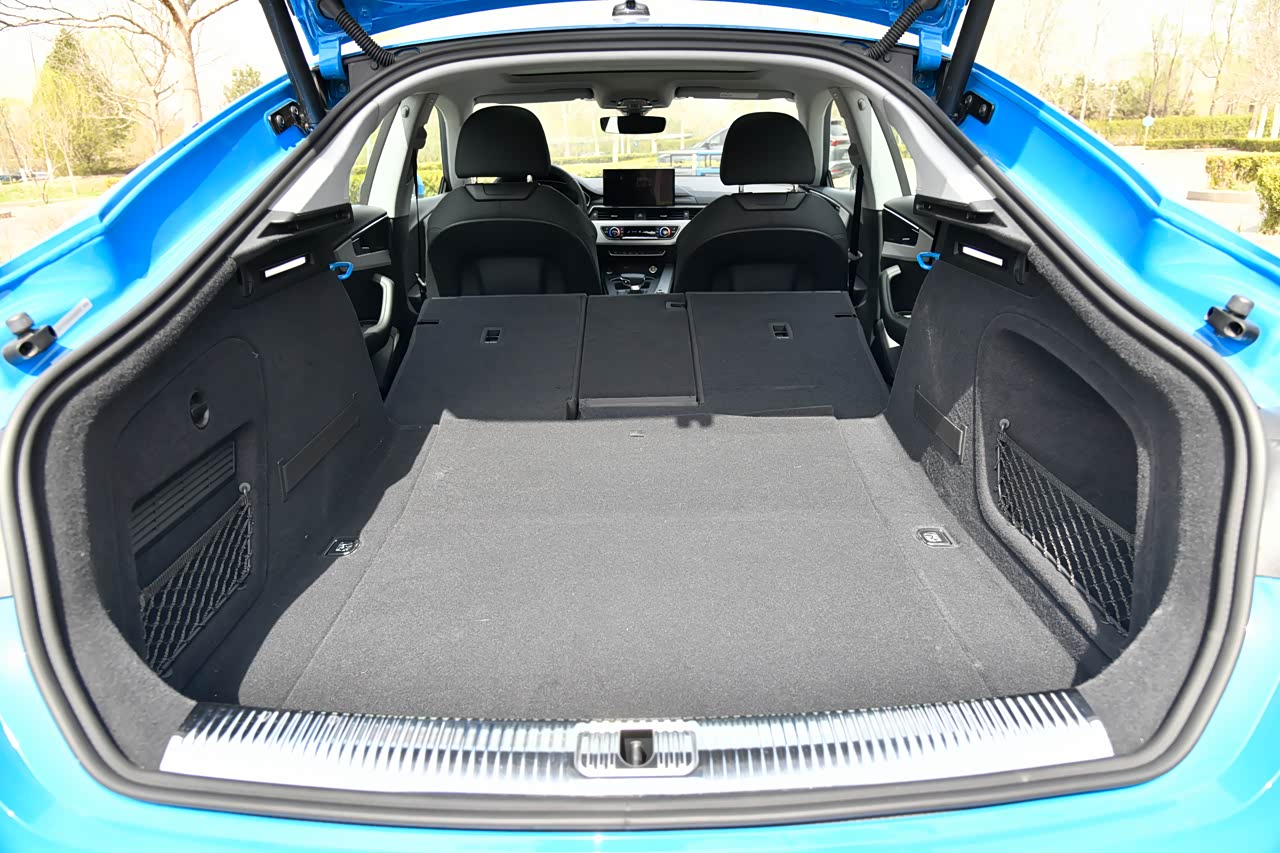 后备厢十分规整,没有受到轮拱影响,两侧还有很贴心的网兜设计,可以容纳零七八碎的小物品。后排座椅支持4/2/4比例放倒,可惜无法达到纯平状态,此时的纵向空间完全不输旅行车和SUV,放置滑雪板、高尔夫球杆等较长的装备毫无压力。