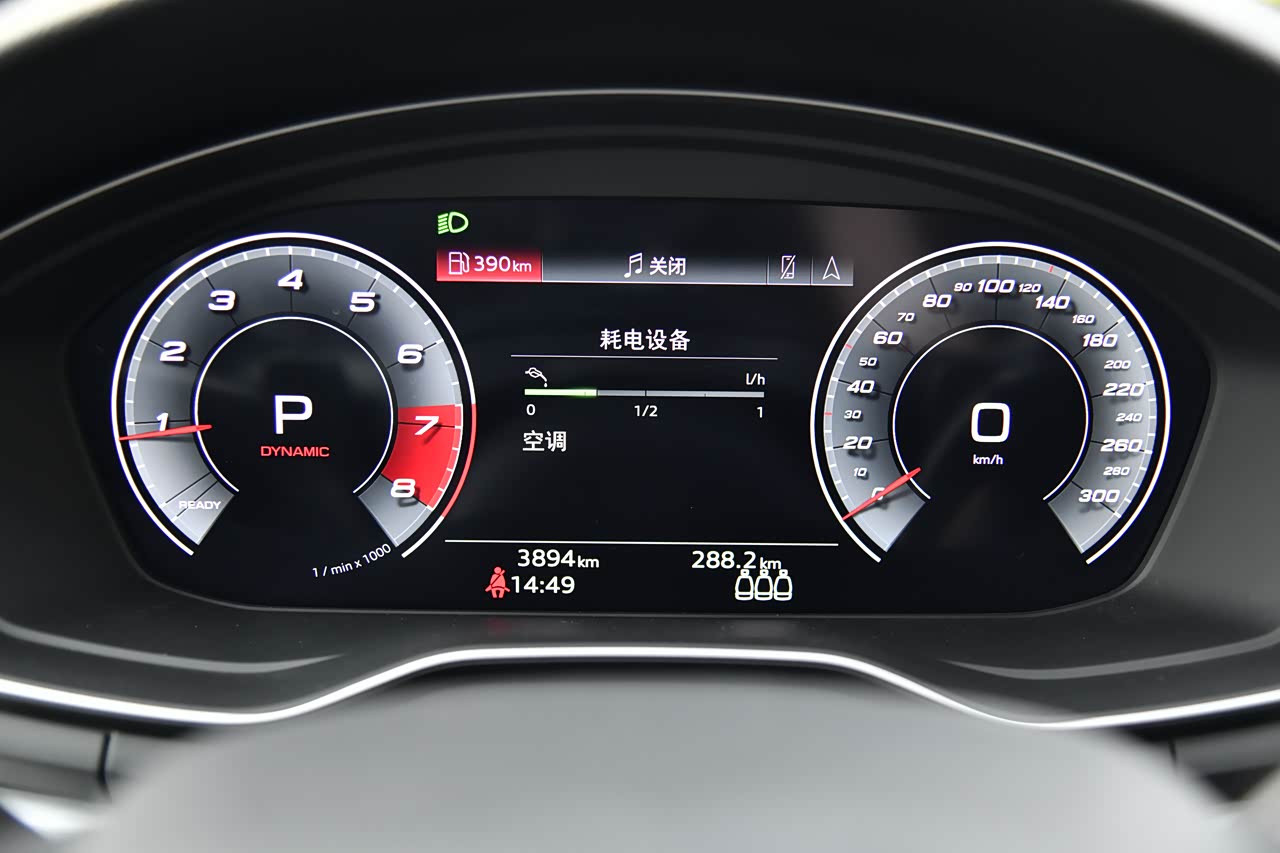 全液晶仪表一直是奥迪比较有优势的配置,显示效果清晰细腻,而且虚拟仪表盘设计风格很有质感,300km/h的时速表也比较唬人,这也是车内唯一能让我感觉“运动”的元素了。