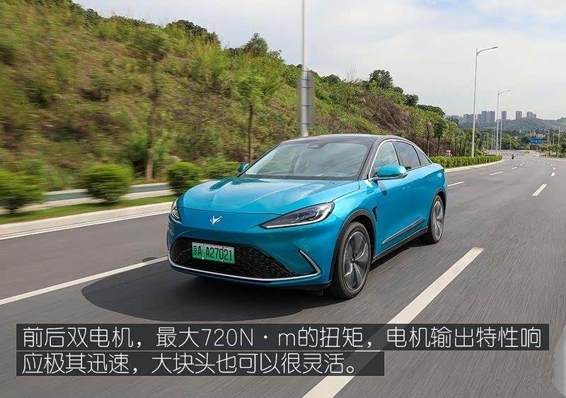 今天试驾的极狐阿尔法S 603H为前后双电机版本,综合最大功率320kW,最大扭矩720N·m,因为配备了双电机,在续航上有些许减少,工信部纯电续航603公里,相比搭载了相同电池的单电机版本,续航少了接近100公里。因为电池让车辆具备了低重心,让底盘拥有了一定的厚重感,过沟过坎很有韧性,能感受到它淡定的车身,同时对细碎震动又有着很好的隔绝。转向以轻柔为主,保留了一定虚位,它不会极致地强调运动感而让车身轻轻转动方向盘而晃动车身。车上乘坐可以很舒适,但想激烈驾驶时。动态掌控可能会稍稍偏弱一点。