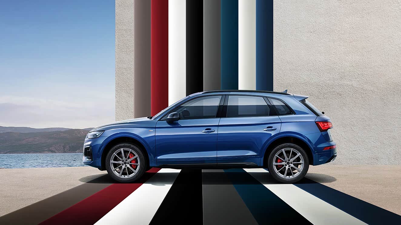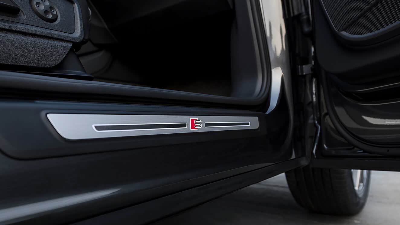 在车身侧面,由于只是改款车型,新车则并没有太大变化,但运动版S-Line套件换装了黑色的车窗装饰条、后视镜罩大尺寸,黑色轮毂、红色刹车卡钳等元素,进一步强化了运动感。