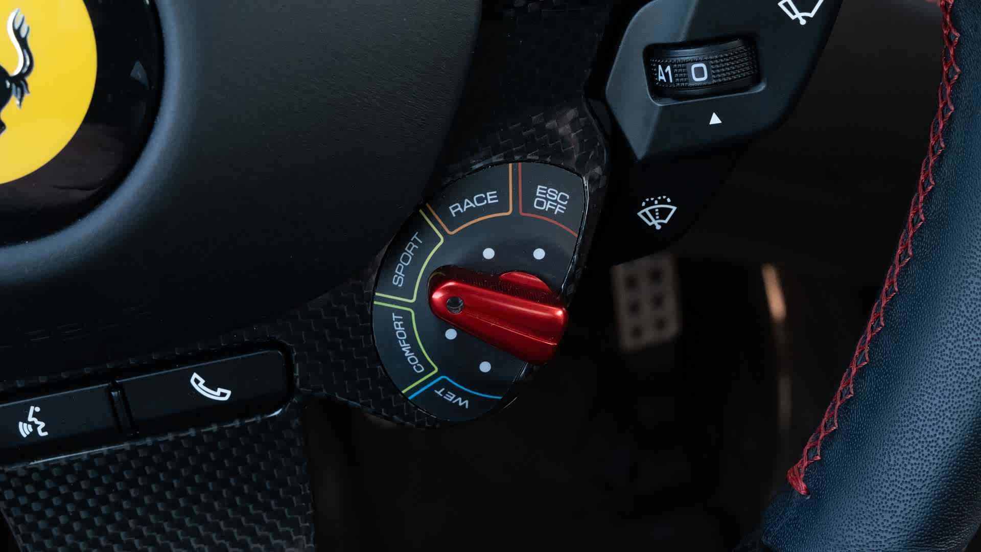 在内饰部分,新车也没有任何明显的变化,中央尺寸超大的机械转速和时速表配左右两侧液晶屏组成的仪表盘系统依旧得到保留,而中控大尺寸液晶屏幕和副驾驶车额外的小屏幕更增添了一份科技感。除此之外造型极致运动的平底碳纤维方向盘、高高翘起的中控区三段按钮设计,随处可见的碳纤维装饰,圆形的炮筒式空调出风口等法拉利的经典元素都没有缺席,时刻提醒着你超跑的身份。