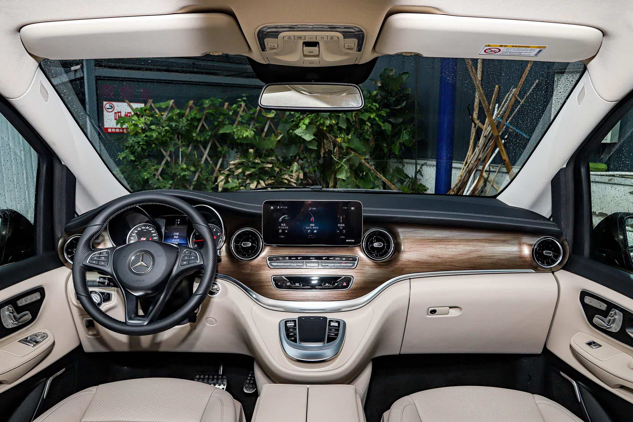 从埃尔法来到V级车上,第一感觉就是现代化许多,因为设计风格与C级非常接近,开起车来司机感没有那么强。中间配备了一块10.25英寸的触摸式屏幕,内置奔驰最新的MBUX智能人机交互系统,响应很快,基本做到指哪打哪,而且支持苹果Carplay手机互联,延展性不错。此外,空调出风口在细节方面也进行了优化,时尚感更强。不过中控台上的“木纹饰板”其实是塑料材质,上手触摸就会暴露,显得有些掉价。