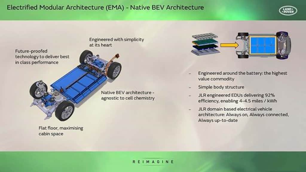 电动化已经是大势所趋,为了顺应时代的发展,路虎终于也以电动车为核心打造了一个全新平台——EMA(电气化模块架构),据称这是一款从设计之初就以电气化目标为优先选择的架构,能适应高级驾驶辅助系统以及5G互联技术,并能提供低地板大空间的优势。