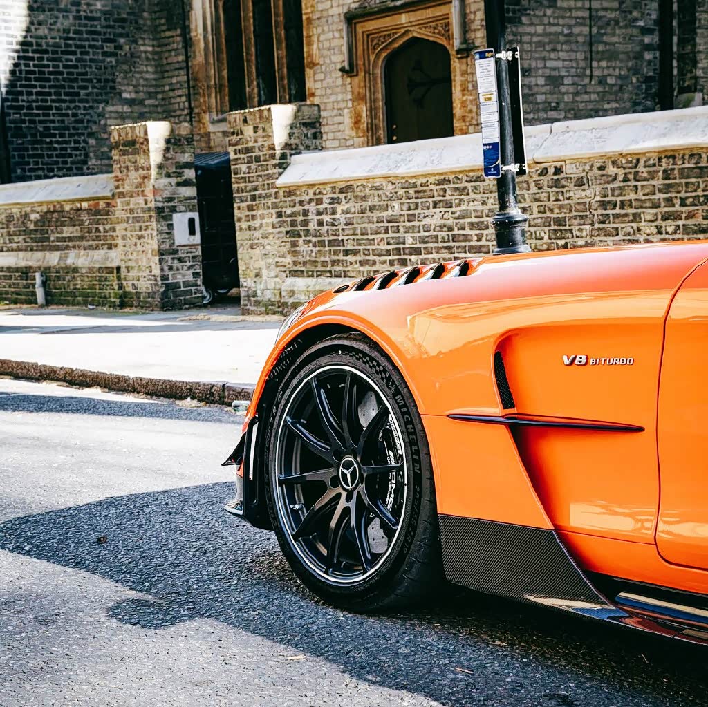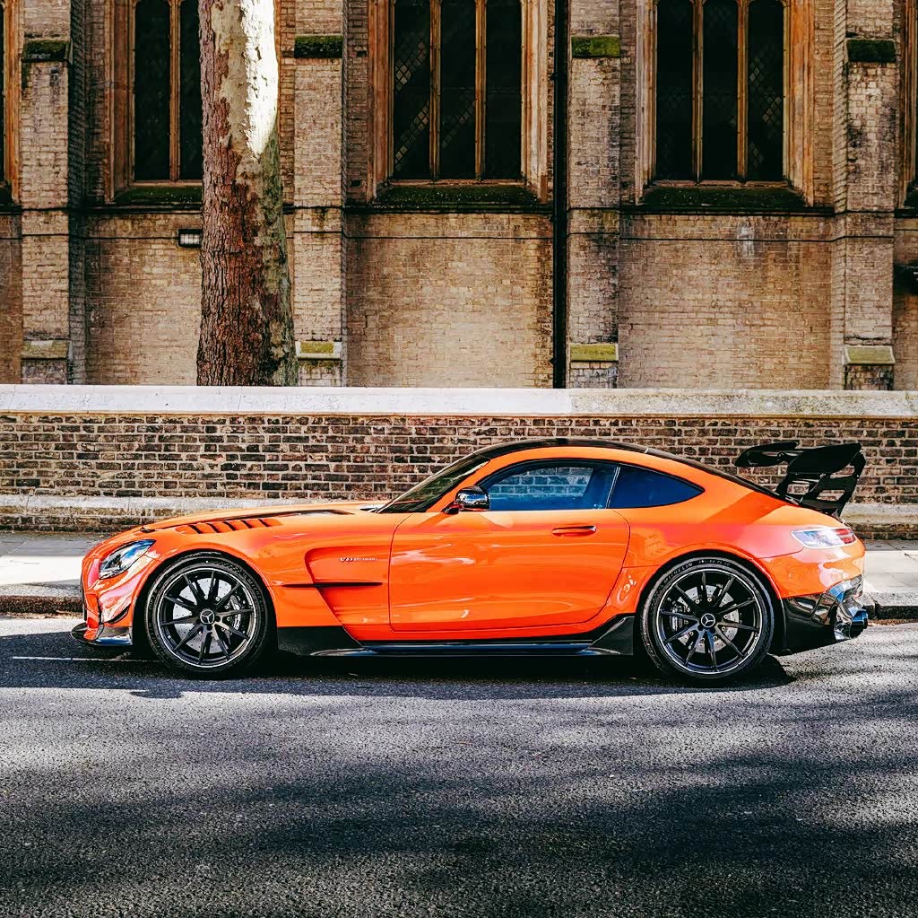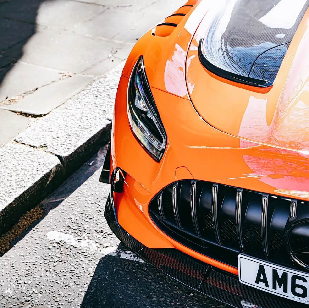 奔驰AMG GT实车,外形是极具赛车化的设计风格,修长的前脸造型彰显着强大的运动气势,橙色车漆尽显潮流时尚的运动感,给人的视觉感也是非常吸睛,开着回头率特别高。前脸超大尺寸的双肾镀铬格栅带来了很强的运动风格,运动奢华气势营造得也是十分到位。头灯设计较为柔和精致,内部结构勾画得十分仔细,点亮后的视觉效果很有冲击力。引擎盖上凸起的线条十分明显,富有很强的肌肉力量。
