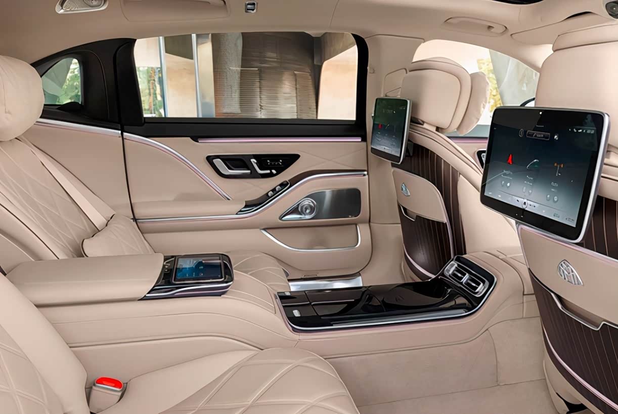 内饰方面,全新一代迈巴赫S 680采用了简洁、舒展的环抱式中控台布局,从地台向上延伸的悬浮式中控屏幕以及全液晶仪表盘强化整个座舱的科技感。并且新车在前排座椅上也采用了菱形纹路的皮质覆盖,带来更高级的视觉观感,配合柔软舒适的头枕设计,对驾驶员的照顾程度还是相当之高。
