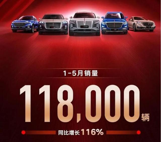 近日,选车网从相关渠道获悉,一汽红旗1-5月累计销量11.8万辆,同比增长116%。需要说明的是,虽然官方并没有披露5月份的销量,但根据前4个月的累计销量91900辆推算,今年5月红旗品牌销量为26100辆,所以整体表现还是同比增长的水平。