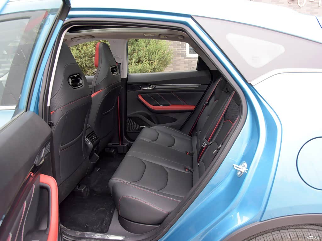 车身侧面通过流畅动感的线条来营造运动感,比如双腰线设计、悬浮式车顶,而最显眼的当然还是18英寸十辐条黑色轮圈(CVT车型),还配上了红色刹车卡钳,营造的运动气息相当强烈。尾部的设计流畅大方,从尾门上方的扰流板到中间与尾灯相连的横向贯穿式黑色饰条,再到底部双边“两出”式镀铬排气等,层次分明,视觉效果突出。当然,排气尾喉只是装饰,不过,的确起到了提升视觉的作用。
