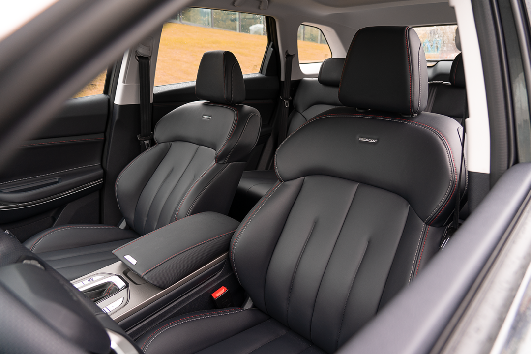 进入车内,按照正常试驾流程老司机还是简单给大家介绍下,中控台采用常见的横向布局,算不是新颖但出彩地方在于做工,触手可及之处基本都采用软性材质包裹,辅以红色缝线,无论是触感还是观感令人满意。这台Geeker版配了双液晶屏,10.25英寸全液晶仪表盘和10.25英寸高清触摸屏对于科技感的烘托到位了,而它俩在日常用车生活中有着许多不可替代的“神奇功用”。