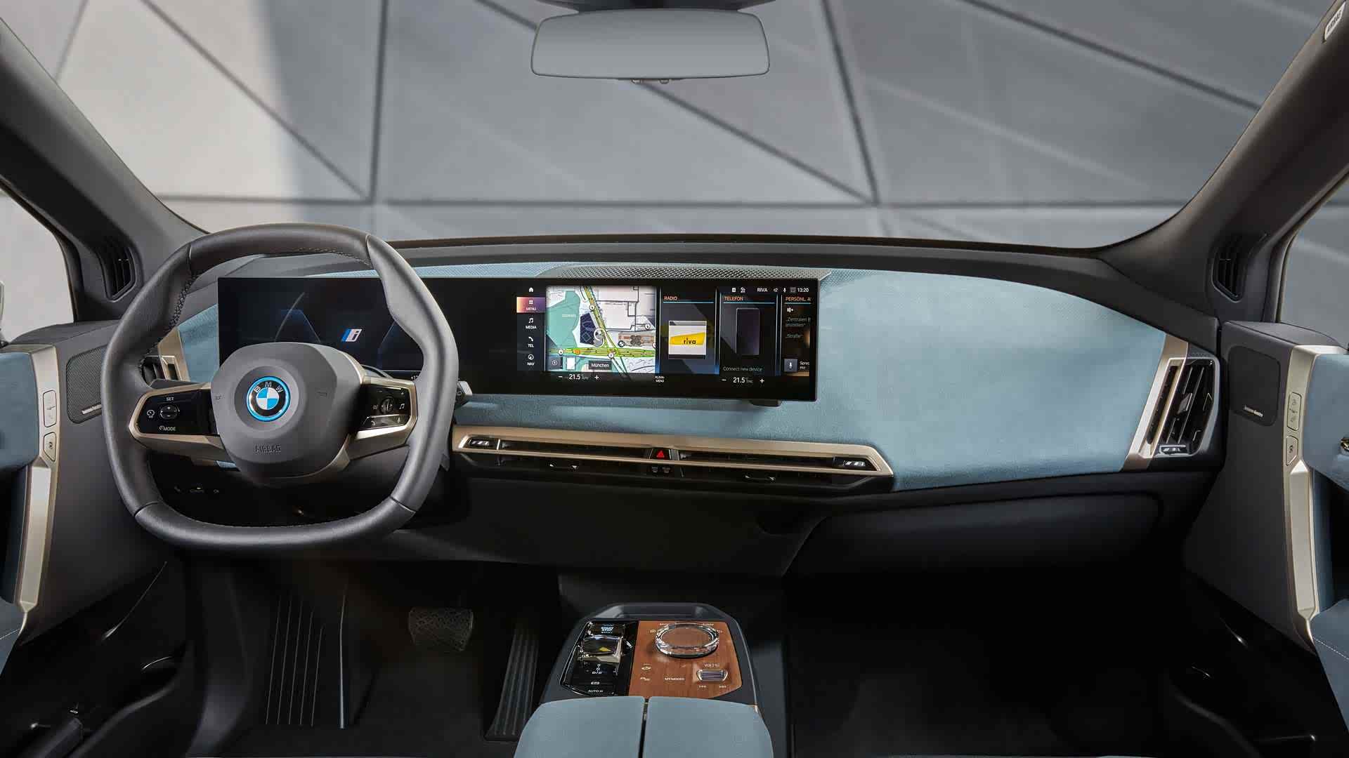 内饰方面,在宝马iX上已经看到现在宝马的影子,内饰设计简洁且充满未来感,除了由12.3英寸的液晶仪表和14.9英寸的中控屏组成的一体化双联屏幕以及空调出风口设计外,中控台已经没有设计的按键或旋钮,这或许就是宝马未来的设计方向。方向盘采用的是六边形设计,同样非常的前卫。