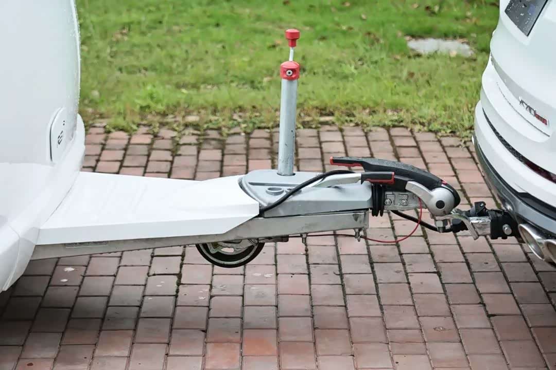 车辆外形尺寸为4700×2400×2755(mm),包含牵引部分整车长6010mm,最大允许总质量为1500kg。车身采用了德国朗仕进口玻璃钢车身,轮毂也为REV定制轮毂。侧面没有预留遮阳棚的配置,取而代之的是外接帐篷的轨道设计,这点还是非常大胆新颖的。