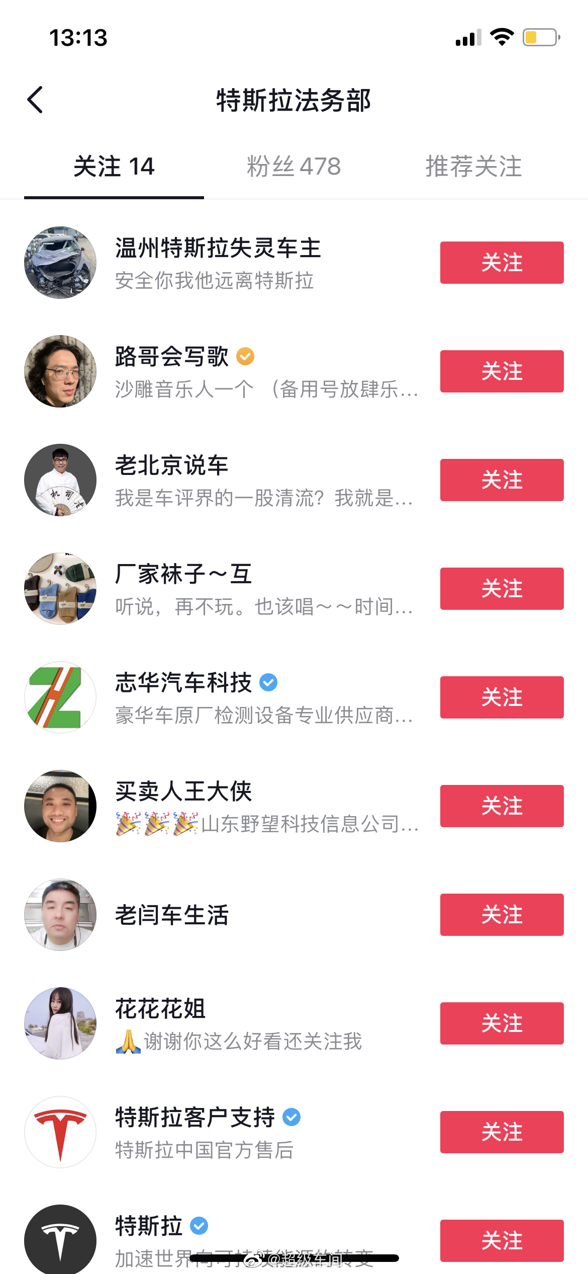 而就在6月2日,该账号显示已关注人除了陶琳、马斯克等多位特斯拉内部高层外,还关注了温州特斯拉失灵车主、路哥会写歌、老北京说车等多位自媒体人以及事故车主,但后续又取消了关注。