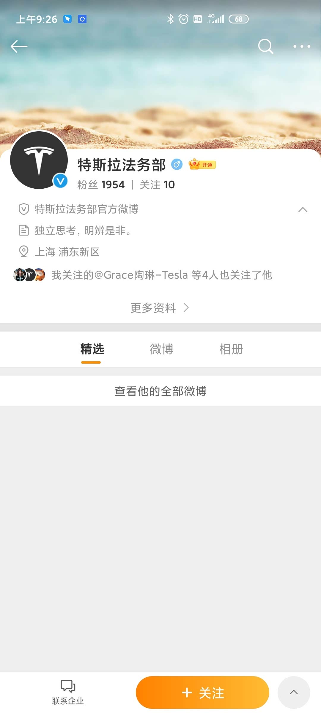 5月31日,特斯拉法务部官方微博正式上线。其中该账号简介为:独立思考,明辨是非。作为汽车主机厂唯一一个在微博开通单个部门的账号,特斯拉法务部的上线有何深意大家都懂——公关部搞不定的事情,法务部来找你说道说道。